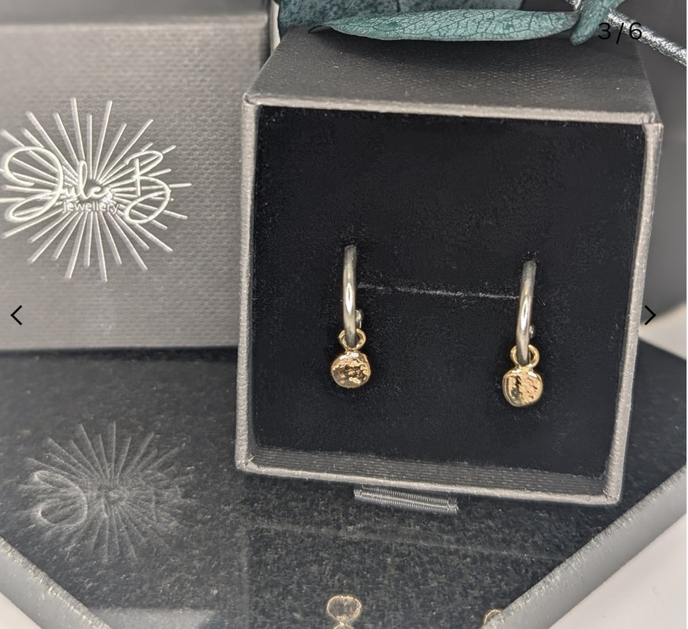 The Huggie Hoop is made with 100% recycled Sterling Silver, adorned with a stunning 9ct gold or Sterling Silver drip charm, these huggie earrings are both lightweight and comfortable, ensuring effortless wear from day to night.
