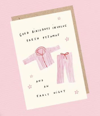 Good birthdays involve fresh pyjamas and an early night Birthday card