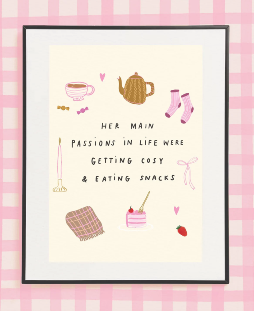 HER MAIN PASSIONS IN LIFE WERE GETTING COSY & EATING SNACKS
