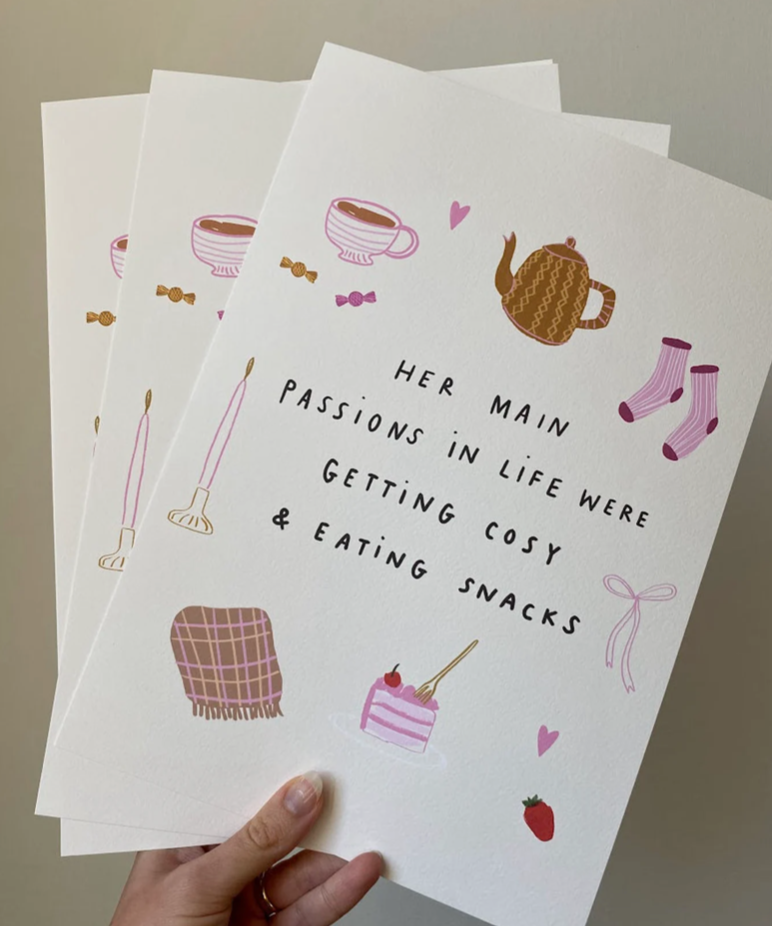 "Her main passions in life were getting cosy & eating snacks"