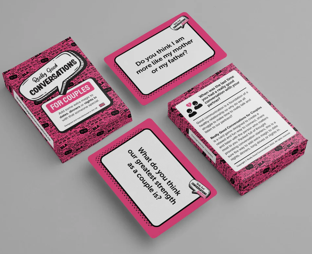 Really Good Conversations for Couples is a card game designed to create a relaxed and fun way to connect, share and listen with the person who matters most to you.