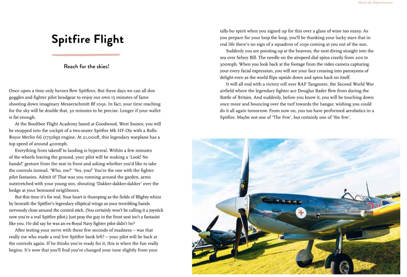 The 60 mini adventures included are graded in difficulty from comically easy to mildly challenging, making them suitable for a wide range of ages and abilities. They include the most beautiful place to go for a stroll, the easiest place for a wild swim and, more importantly, the most spectacular place to have a cup of tea. Not to mention flying in a Spitfire and finding delicious food among the hedgerows.